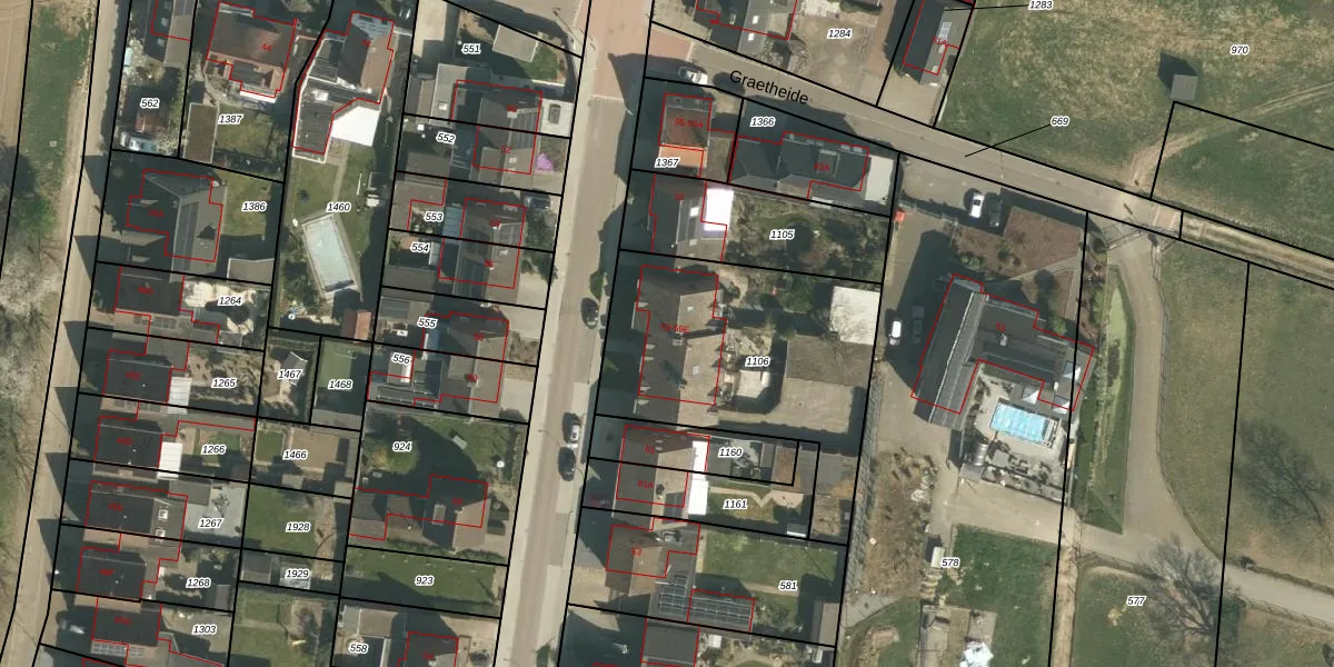Graetheide 59-B is gelegen op kadastraal perceel BOR00I1106. Deze kadastrale aanduiding is uniek en wordt gebruikt door het Kadaster om eigendomsrechten en andere zakelijke rechten vast te leggen. Het perceel maakt onderdeel uit van de kadastrale gemeente Born.