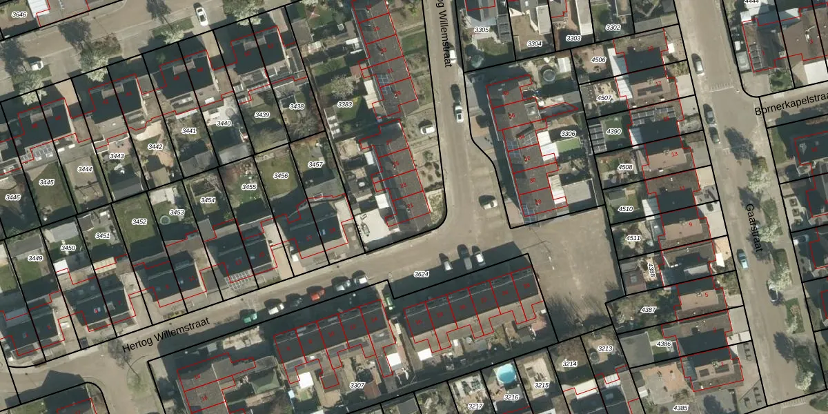 Hertog Willemstraat 21 is gelegen op kadastraal perceel BOR00F3383. Deze kadastrale aanduiding is uniek en wordt gebruikt door het Kadaster om eigendomsrechten en andere zakelijke rechten vast te leggen. Het perceel maakt onderdeel uit van de kadastrale gemeente Born.