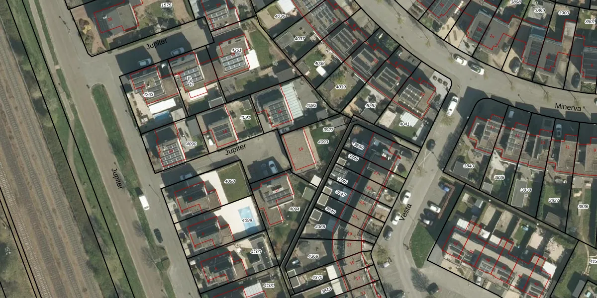 Het perceel waarop Jupiter 14 staat heeft een oppervlakte van 321 m². Dit is een groot perceel. De perceeloppervlakte wordt geregistreerd door het Kadaster. Gedetailleerde informatie over de maten van dit perceel kunt u vinden in het rapport Kadastrale kaart met maatvoering van Jupiter 14.