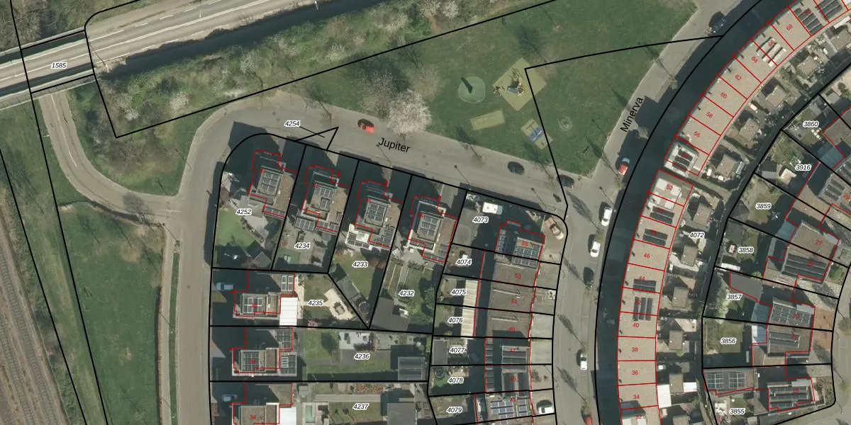 Het perceel waarop Jupiter 46 staat heeft een oppervlakte van 490 m². Dit is een groot perceel. De perceeloppervlakte wordt geregistreerd door het Kadaster. Gedetailleerde informatie over de maten van dit perceel kunt u vinden in het rapport Kadastrale kaart met maatvoering van Jupiter 46.