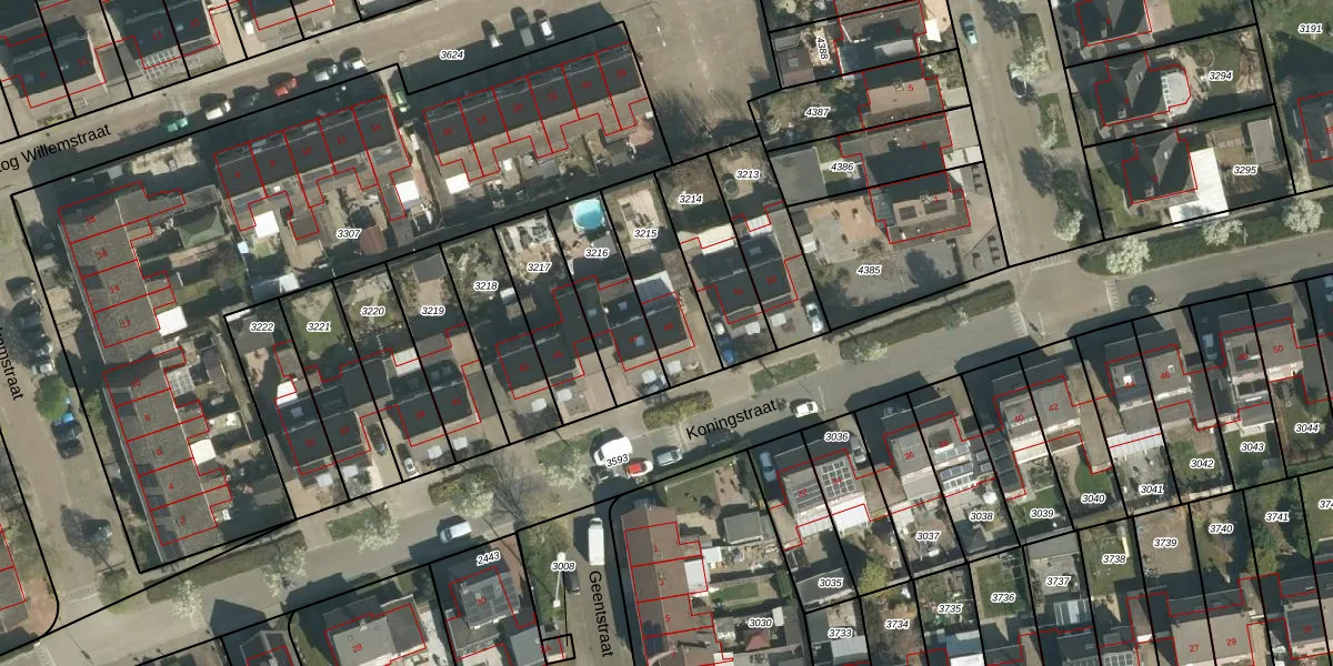 Het perceel waarop Koningstraat 49 staat heeft een oppervlakte van 267 m². Dit is een middelgroot perceel. De perceeloppervlakte wordt geregistreerd door het Kadaster. Gedetailleerde informatie over de maten van dit perceel kunt u vinden in het rapport Kadastrale kaart met maatvoering van Koningstraat 49.