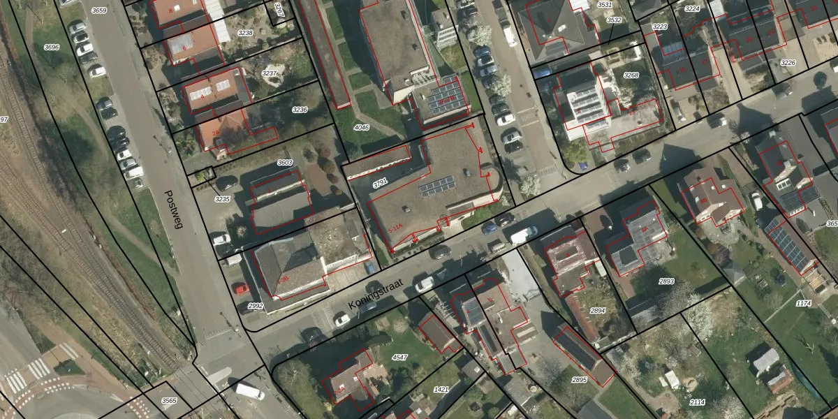 Het perceel waarop Koningstraat 5-C staat heeft een oppervlakte van 899 m². Dit is een groot perceel. De perceeloppervlakte wordt geregistreerd door het Kadaster. Gedetailleerde informatie over de maten van dit perceel kunt u vinden in het rapport Kadastrale kaart met maatvoering van Koningstraat 5-C.