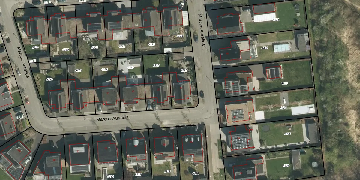 Het perceel waarop Marcus Aurelius 17 staat heeft een oppervlakte van 447 m². Dit is een groot perceel. De perceeloppervlakte wordt geregistreerd door het Kadaster. Gedetailleerde informatie over de maten van dit perceel kunt u vinden in het rapport Kadastrale kaart met maatvoering van Marcus Aurelius 17.