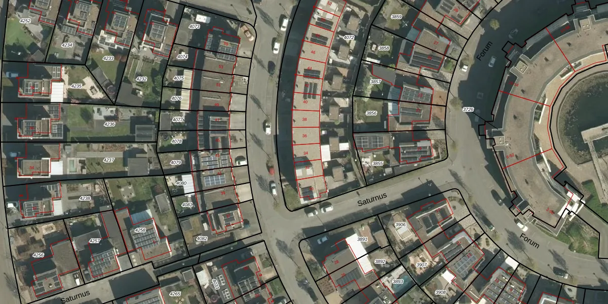 Het perceel waarop Minerva 34 staat heeft een oppervlakte van 3525 m². Dit is een zeer groot perceel. De perceeloppervlakte wordt geregistreerd door het Kadaster. Gedetailleerde informatie over de maten van dit perceel kunt u vinden in het rapport Kadastrale kaart met maatvoering van Minerva 34.