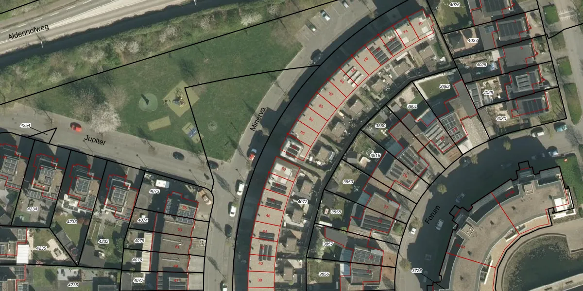 Minerva 54 is gelegen op kadastraal perceel BOR00F4072. Deze kadastrale aanduiding is uniek en wordt gebruikt door het Kadaster om eigendomsrechten en andere zakelijke rechten vast te leggen. Het perceel maakt onderdeel uit van de kadastrale gemeente Born.