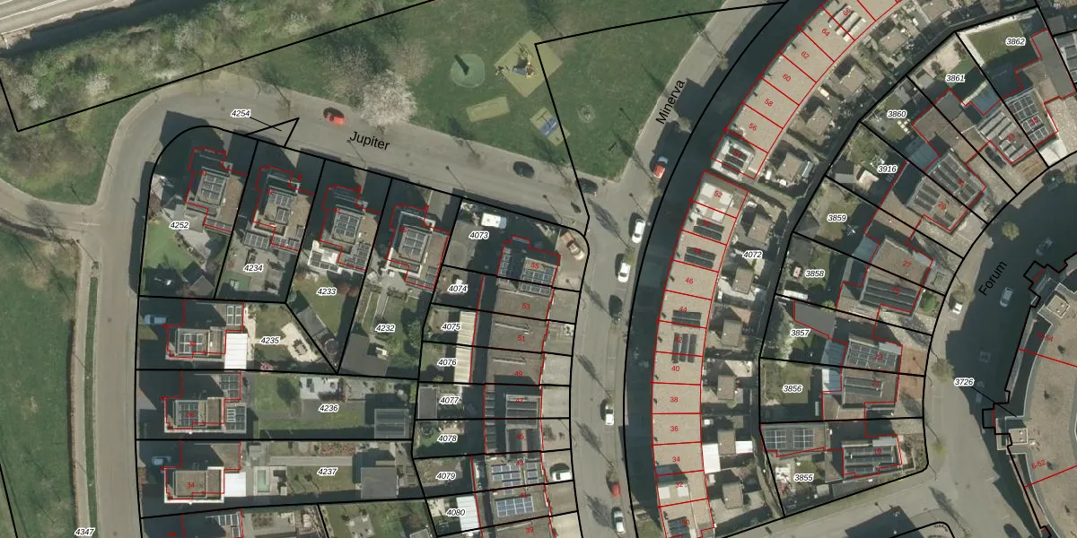 Het perceel waarop Minerva 55 staat heeft een oppervlakte van 305 m². Dit is een groot perceel. De perceeloppervlakte wordt geregistreerd door het Kadaster. Gedetailleerde informatie over de maten van dit perceel kunt u vinden in het rapport Kadastrale kaart met maatvoering van Minerva 55.