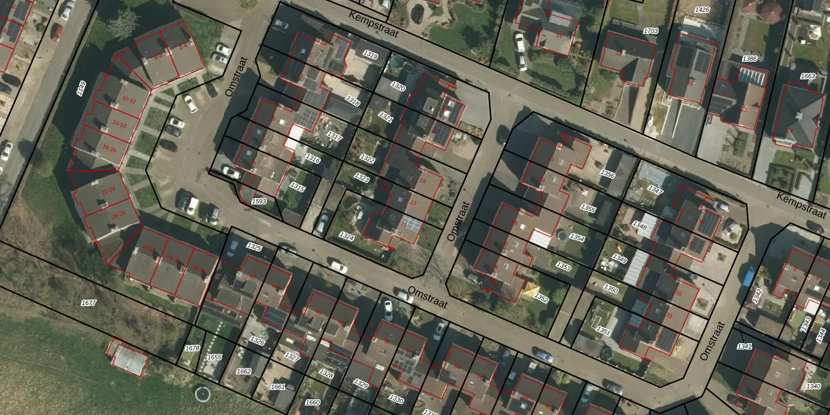 Het perceel waarop Omstraat 13 staat heeft een oppervlakte van 213 m². Dit is een middelgroot perceel. De perceeloppervlakte wordt geregistreerd door het Kadaster. Gedetailleerde informatie over de maten van dit perceel kunt u vinden in het rapport Kadastrale kaart met maatvoering van Omstraat 13.