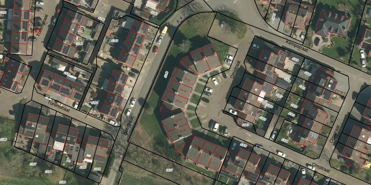 Omstraat 14 is gelegen op kadastraal perceel BOR00I1149. Deze kadastrale aanduiding is uniek en wordt gebruikt door het Kadaster om eigendomsrechten en andere zakelijke rechten vast te leggen. Het perceel maakt onderdeel uit van de kadastrale gemeente Born.