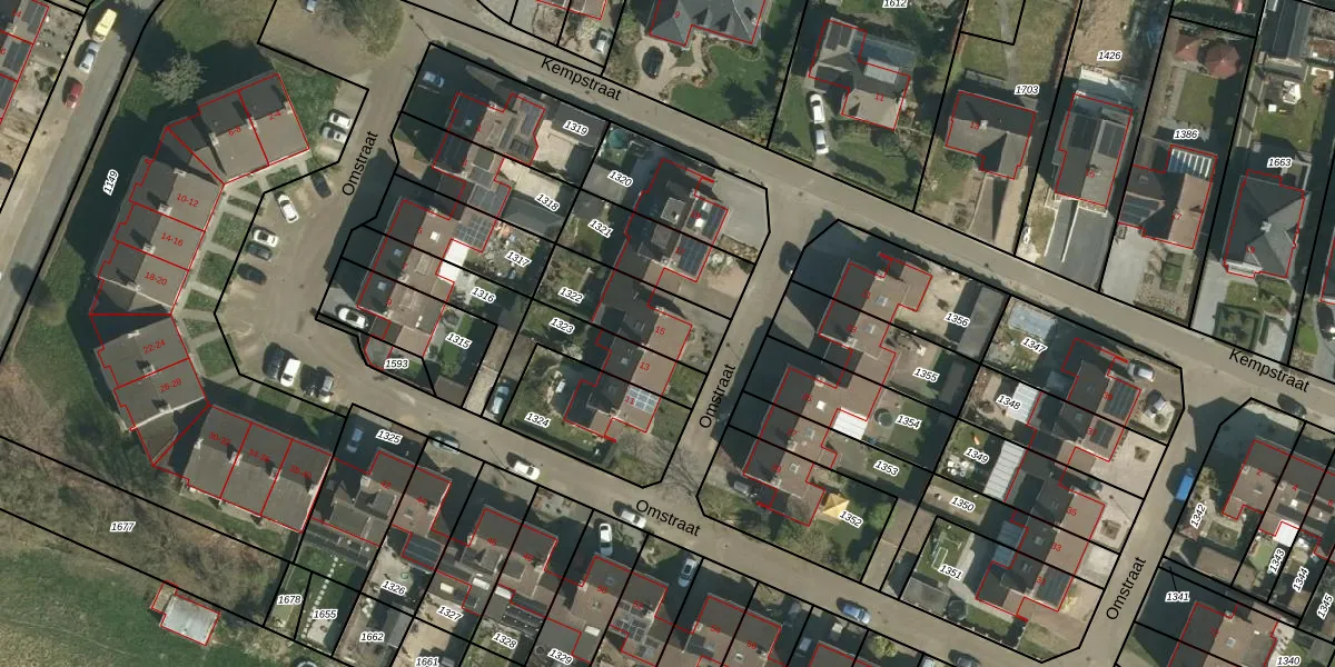 Gebruik de zoekbalk of klik op een perceel voor informatie over de adressen binnen dit perceel.