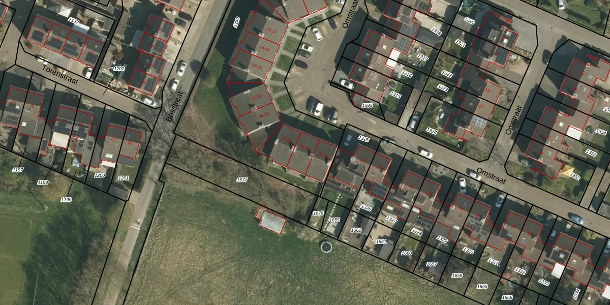 Het perceel waarop Omstraat 36 staat heeft een oppervlakte van 2700 m². Dit is een zeer groot perceel. De perceeloppervlakte wordt geregistreerd door het Kadaster. Gedetailleerde informatie over de maten van dit perceel kunt u vinden in het rapport Kadastrale kaart met maatvoering van Omstraat 36.