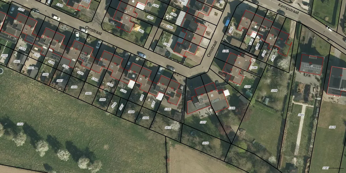 Het perceel waarop Omstraat 64 staat heeft een oppervlakte van 325 m². Dit is een groot perceel. De perceeloppervlakte wordt geregistreerd door het Kadaster. Gedetailleerde informatie over de maten van dit perceel kunt u vinden in het rapport Kadastrale kaart met maatvoering van Omstraat 64.