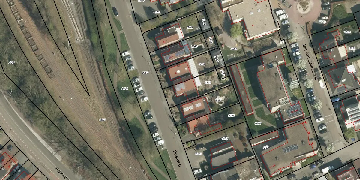 Het perceel waarop Postweg 6 staat heeft een oppervlakte van 375 m². Dit is een groot perceel. De perceeloppervlakte wordt geregistreerd door het Kadaster. Gedetailleerde informatie over de maten van dit perceel kunt u vinden in het rapport Kadastrale kaart met maatvoering van Postweg 6.