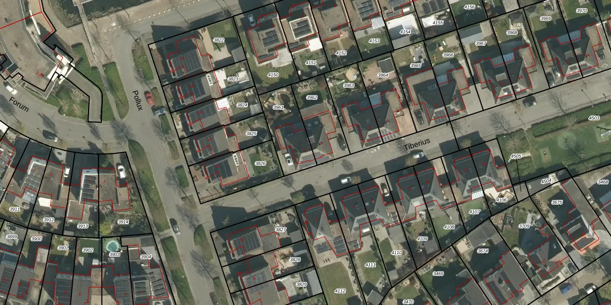 Het perceel waarop Tiberius 1 staat heeft een oppervlakte van 316 m². Dit is een groot perceel. De perceeloppervlakte wordt geregistreerd door het Kadaster. Gedetailleerde informatie over de maten van dit perceel kunt u vinden in het rapport Kadastrale kaart met maatvoering van Tiberius 1.