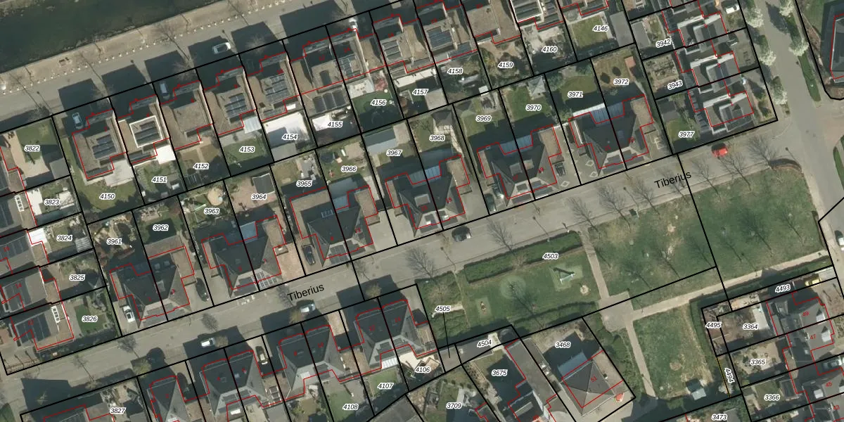 Het perceel waarop Tiberius 13 staat heeft een oppervlakte van 320 m². Dit is een groot perceel. De perceeloppervlakte wordt geregistreerd door het Kadaster. Gedetailleerde informatie over de maten van dit perceel kunt u vinden in het rapport Kadastrale kaart met maatvoering van Tiberius 13.