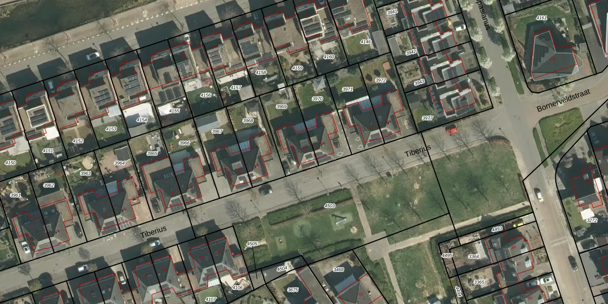 Het perceel waarop Tiberius 17 staat heeft een oppervlakte van 320 m². Dit is een groot perceel. De perceeloppervlakte wordt geregistreerd door het Kadaster. Gedetailleerde informatie over de maten van dit perceel kunt u vinden in het rapport Kadastrale kaart met maatvoering van Tiberius 17.
