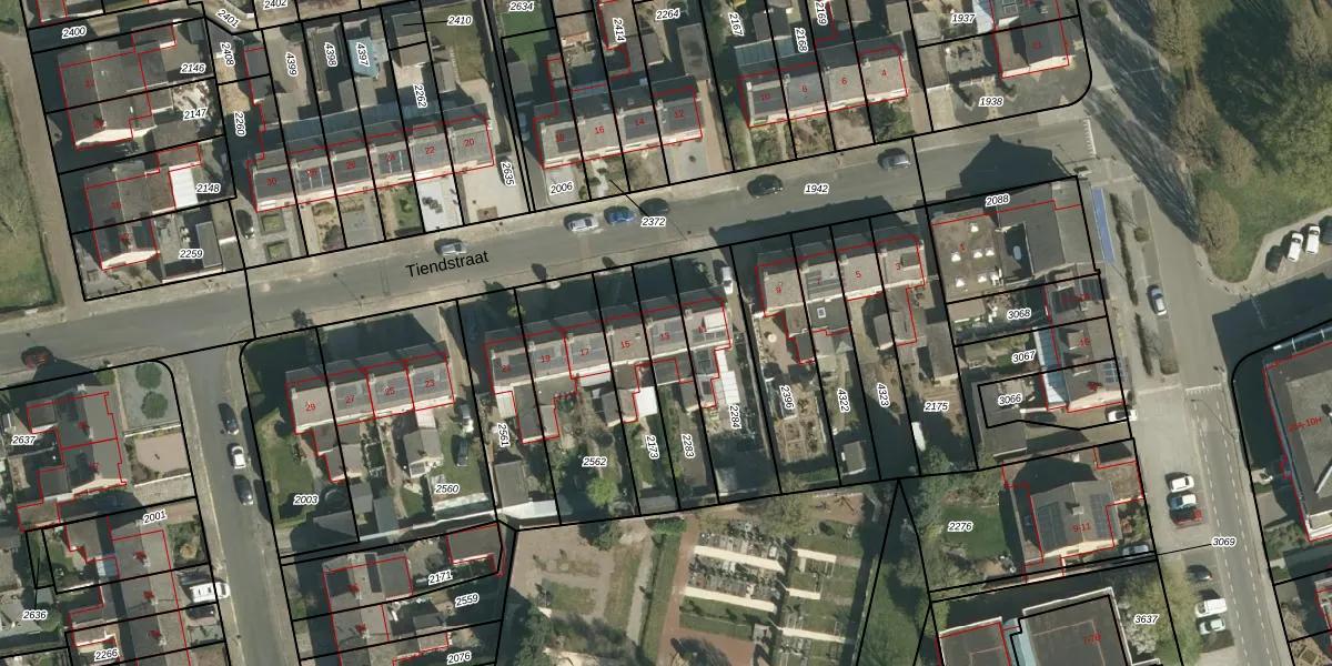 Het perceel waarop Tiendstraat 13 staat heeft een oppervlakte van 228 m². Dit is een middelgroot perceel. De perceeloppervlakte wordt geregistreerd door het Kadaster. Gedetailleerde informatie over de maten van dit perceel kunt u vinden in het rapport Kadastrale kaart met maatvoering van Tiendstraat 13.