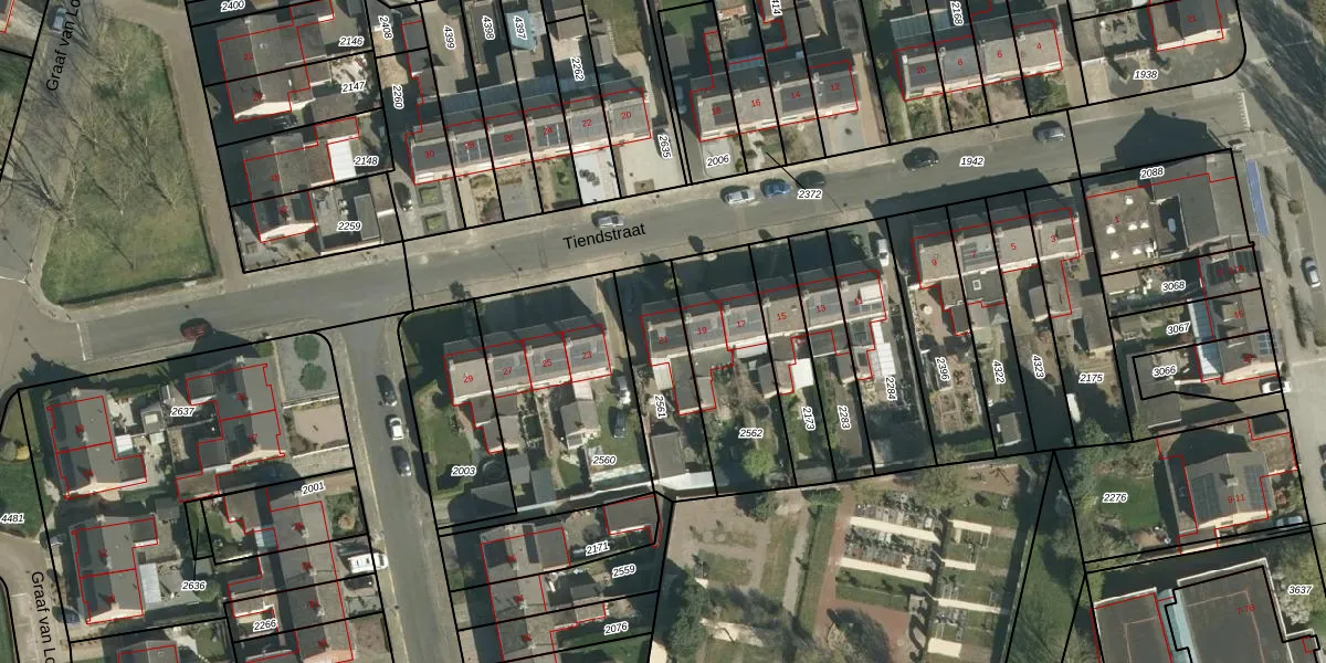 Tiendstraat 21 is gelegen op kadastraal perceel BOR00F2561. Deze kadastrale aanduiding is uniek en wordt gebruikt door het Kadaster om eigendomsrechten en andere zakelijke rechten vast te leggen. Het perceel maakt onderdeel uit van de kadastrale gemeente Born.