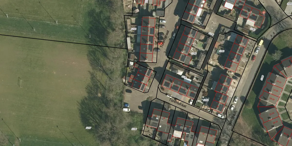 Torenstraat 12 is gelegen op kadastraal perceel BOR00I1233. Deze kadastrale aanduiding is uniek en wordt gebruikt door het Kadaster om eigendomsrechten en andere zakelijke rechten vast te leggen. Het perceel maakt onderdeel uit van de kadastrale gemeente Born.
