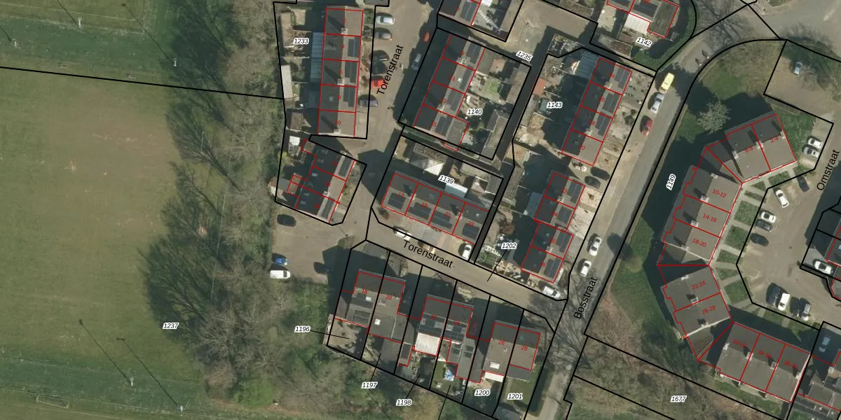 Het perceel waarop Torenstraat 19 staat heeft een oppervlakte van 560 m². Dit is een groot perceel. De perceeloppervlakte wordt geregistreerd door het Kadaster. Gedetailleerde informatie over de maten van dit perceel kunt u vinden in het rapport Kadastrale kaart met maatvoering van Torenstraat 19.