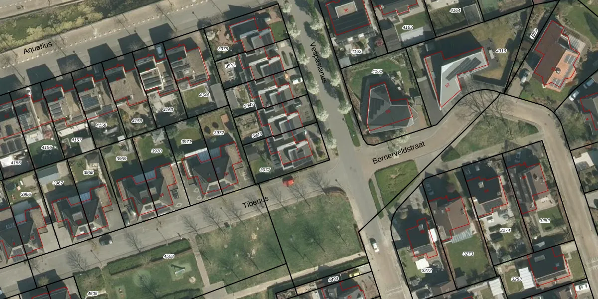 Het perceel waarop Vespasianus 1 staat heeft een oppervlakte van 352 m². Dit is een groot perceel. De perceeloppervlakte wordt geregistreerd door het Kadaster. Gedetailleerde informatie over de maten van dit perceel kunt u vinden in het rapport Kadastrale kaart met maatvoering van Vespasianus 1.