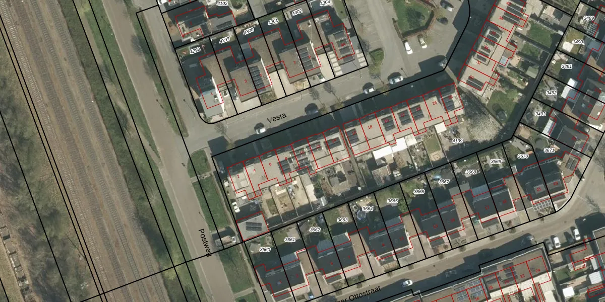 Het perceel waarop Vesta 10 staat heeft een oppervlakte van 5074 m². Dit is een zeer groot perceel. De perceeloppervlakte wordt geregistreerd door het Kadaster. Gedetailleerde informatie over de maten van dit perceel kunt u vinden in het rapport Kadastrale kaart met maatvoering van Vesta 10.