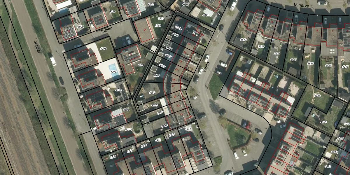 Het perceel waarop Vesta 17 staat heeft een oppervlakte van 217 m². Dit is een middelgroot perceel. De perceeloppervlakte wordt geregistreerd door het Kadaster. Gedetailleerde informatie over de maten van dit perceel kunt u vinden in het rapport Kadastrale kaart met maatvoering van Vesta 17.