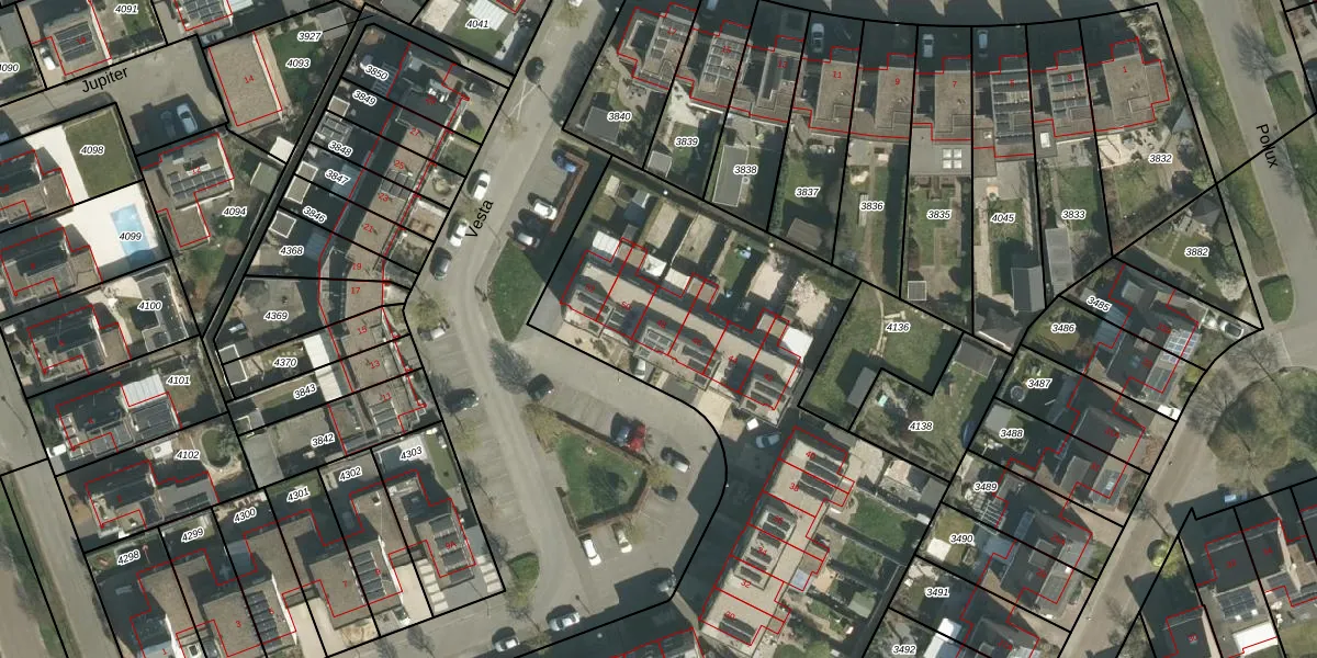 Het perceel waarop Vesta 48 staat heeft een oppervlakte van 5074 m². Dit is een zeer groot perceel. De perceeloppervlakte wordt geregistreerd door het Kadaster. Gedetailleerde informatie over de maten van dit perceel kunt u vinden in het rapport Kadastrale kaart met maatvoering van Vesta 48.