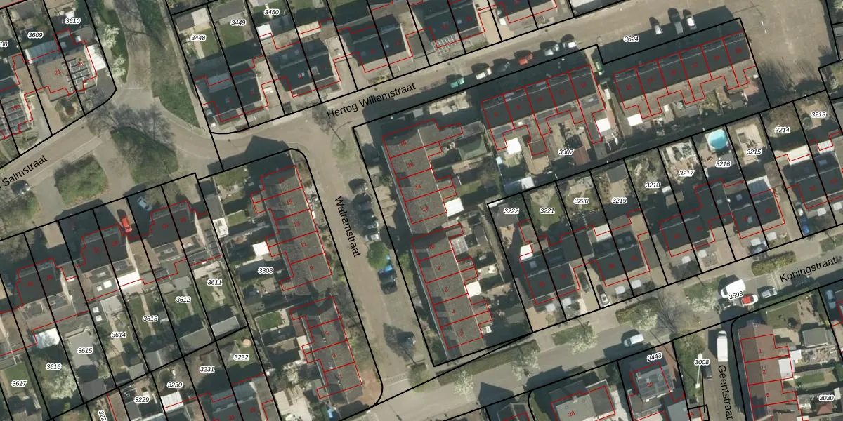 Het perceel waarop Walramstraat 12 staat heeft een oppervlakte van 3255 m². Dit is een zeer groot perceel. De perceeloppervlakte wordt geregistreerd door het Kadaster. Gedetailleerde informatie over de maten van dit perceel kunt u vinden in het rapport Kadastrale kaart met maatvoering van Walramstraat 12.