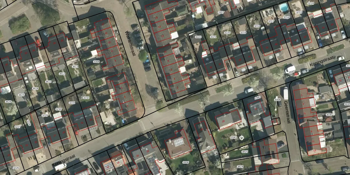Het perceel waarop Walramstraat 2 staat heeft een oppervlakte van 3255 m². Dit is een zeer groot perceel. De perceeloppervlakte wordt geregistreerd door het Kadaster. Gedetailleerde informatie over de maten van dit perceel kunt u vinden in het rapport Kadastrale kaart met maatvoering van Walramstraat 2.