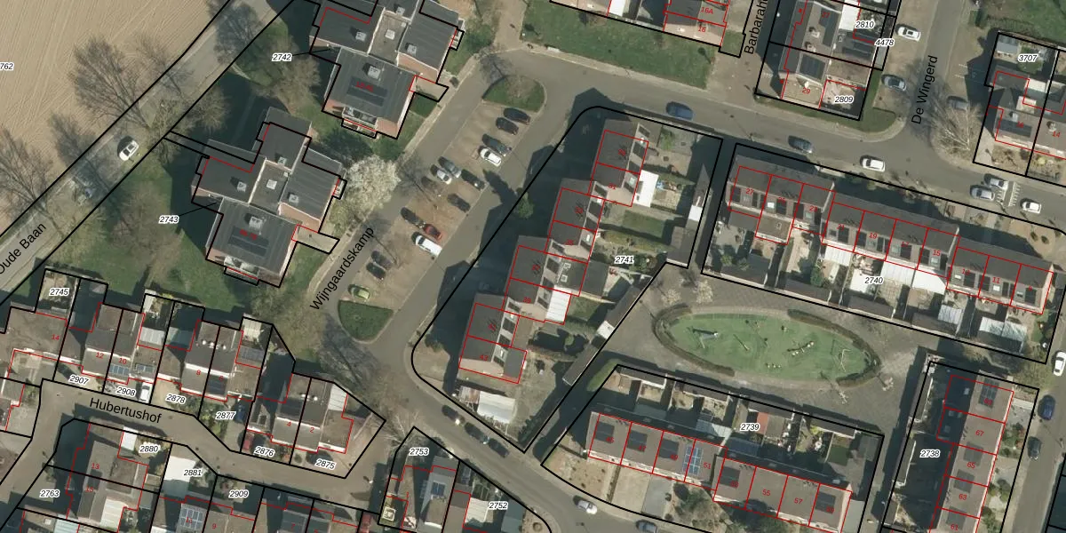 Het perceel waarop Wijngaardskamp 37 staat heeft een oppervlakte van 1870 m². Dit is een zeer groot perceel. De perceeloppervlakte wordt geregistreerd door het Kadaster. Gedetailleerde informatie over de maten van dit perceel kunt u vinden in het rapport Kadastrale kaart met maatvoering van Wijngaardskamp 37.