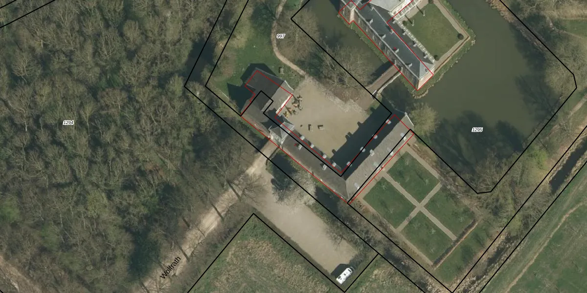 Het perceel waarop Wolfrath 1 staat heeft een oppervlakte van 9302 m². Dit is een zeer groot perceel. De perceeloppervlakte wordt geregistreerd door het Kadaster. Gedetailleerde informatie over de maten van dit perceel kunt u vinden in het rapport Kadastrale kaart met maatvoering van Wolfrath 1.