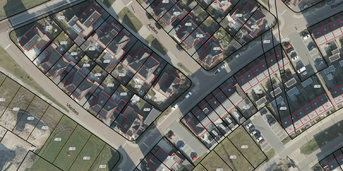 Het perceel waarop Aalbes 1 staat heeft een oppervlakte van 420 m². Dit is een groot perceel. De perceeloppervlakte wordt geregistreerd door het Kadaster. Gedetailleerde informatie over de maten van dit perceel kunt u vinden in het rapport Kadastrale kaart met maatvoering van Aalbes 1.