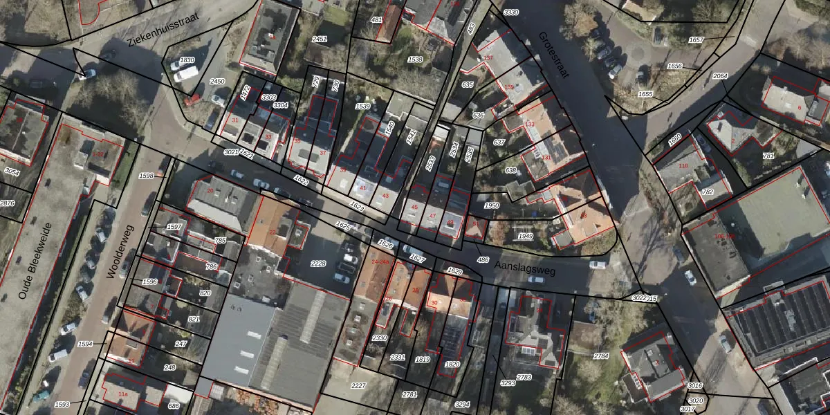 Aanslagsweg 45 is gelegen op kadastraal perceel BNE00I2533. Deze kadastrale aanduiding is uniek en wordt gebruikt door het Kadaster om eigendomsrechten en andere zakelijke rechten vast te leggen. Het perceel maakt onderdeel uit van de kadastrale gemeente Borne.