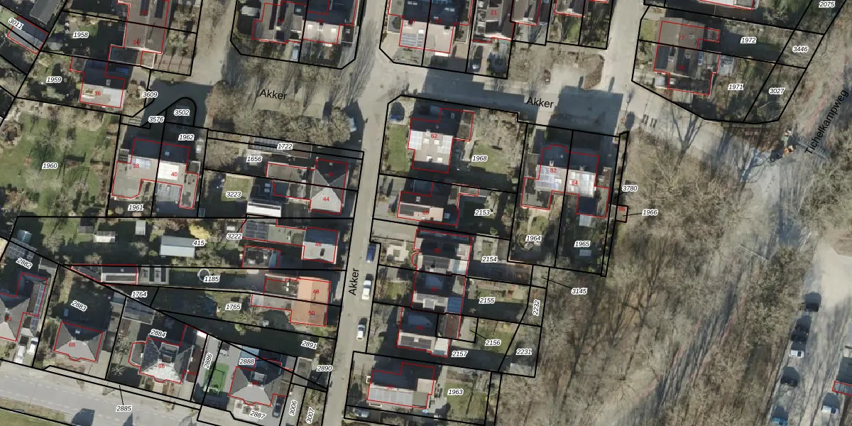 Het perceel waarop Akker 60 staat heeft een oppervlakte van 355 m². Dit is een groot perceel. De perceeloppervlakte wordt geregistreerd door het Kadaster. Gedetailleerde informatie over de maten van dit perceel kunt u vinden in het rapport Kadastrale kaart met maatvoering van Akker 60.
