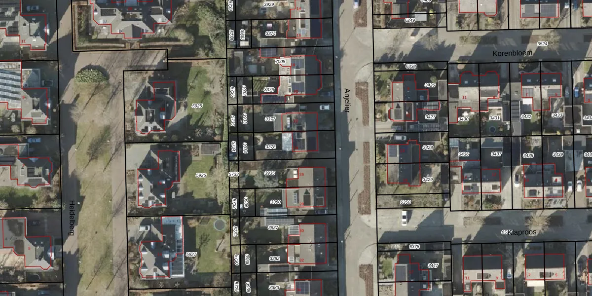 Gebruik de zoekbalk of klik op een perceel voor informatie over de adressen binnen dit perceel.