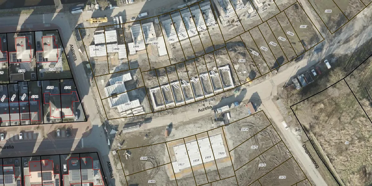 Het perceel waarop Aurelia 31 staat heeft een oppervlakte van 121 m². Dit is een middelgroot perceel. De perceeloppervlakte wordt geregistreerd door het Kadaster. Gedetailleerde informatie over de maten van dit perceel kunt u vinden in het rapport Kadastrale kaart met maatvoering van Aurelia 31.