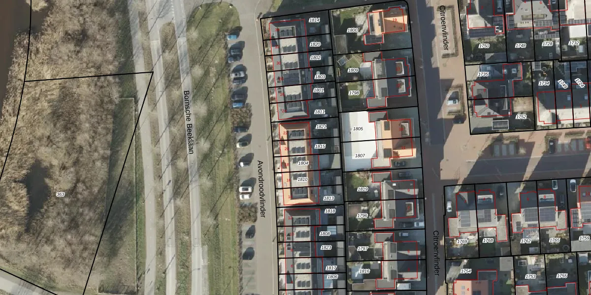 Avondroodvlinder 20 is gelegen op kadastraal perceel BNE00L1815. Deze kadastrale aanduiding is uniek en wordt gebruikt door het Kadaster om eigendomsrechten en andere zakelijke rechten vast te leggen. Het perceel maakt onderdeel uit van de kadastrale gemeente Borne.