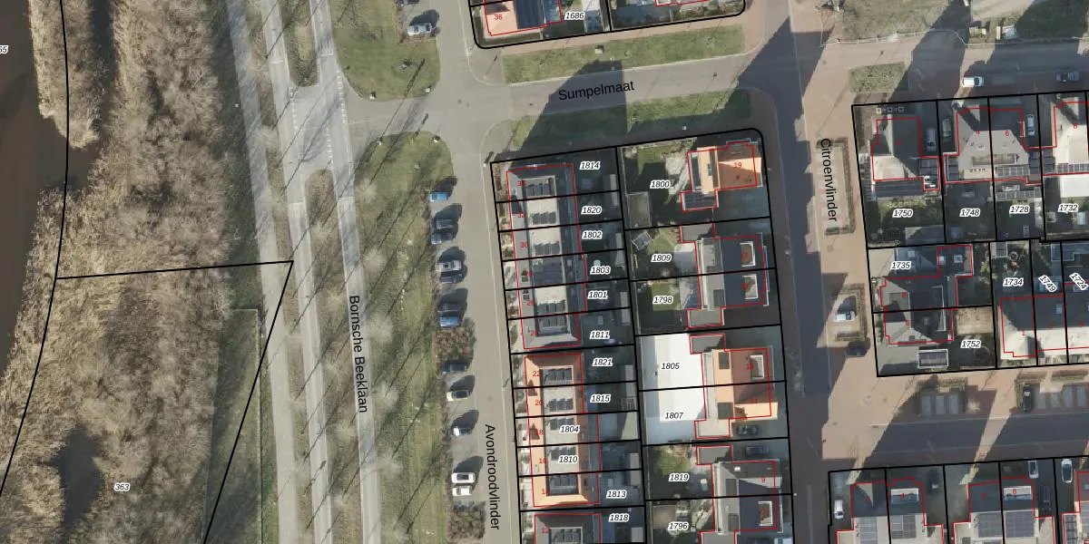 Gebruik de zoekbalk of klik op een perceel voor informatie over de adressen binnen dit perceel.