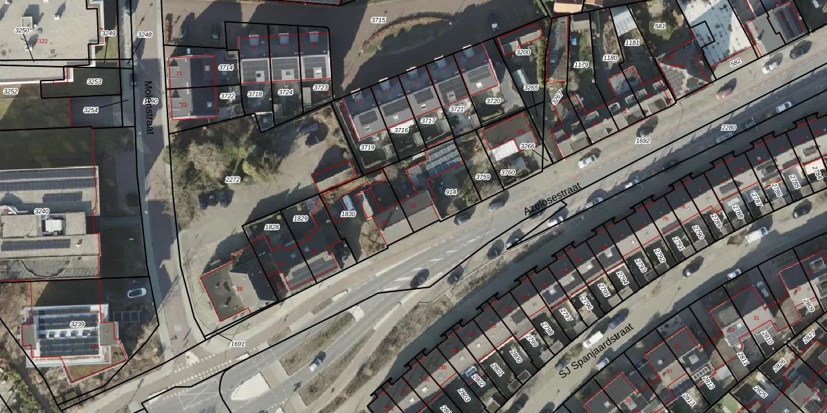 Het perceel waarop Azelosestraat 26 staat heeft een oppervlakte van 315 m². Dit is een groot perceel. De perceeloppervlakte wordt geregistreerd door het Kadaster. Gedetailleerde informatie over de maten van dit perceel kunt u vinden in het rapport Kadastrale kaart met maatvoering van Azelosestraat 26.