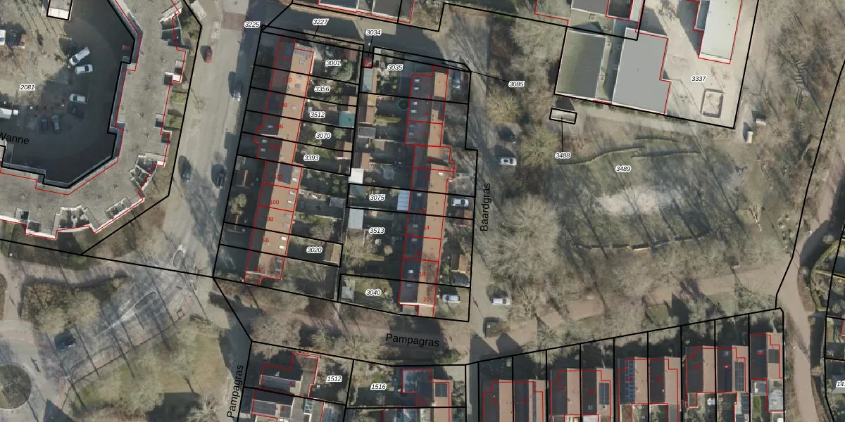 Gebruik de zoekbalk of klik op een perceel voor informatie over de adressen binnen dit perceel.
