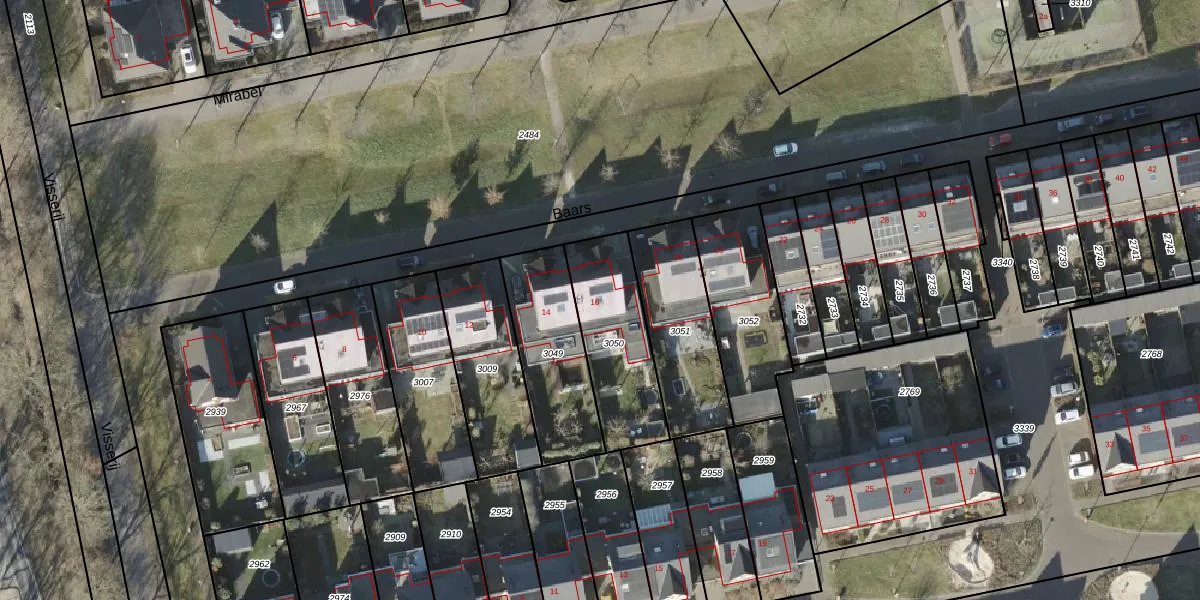 Het perceel waarop Baars 16 staat heeft een oppervlakte van 386 m². Dit is een groot perceel. De perceeloppervlakte wordt geregistreerd door het Kadaster. Gedetailleerde informatie over de maten van dit perceel kunt u vinden in het rapport Kadastrale kaart met maatvoering van Baars 16.