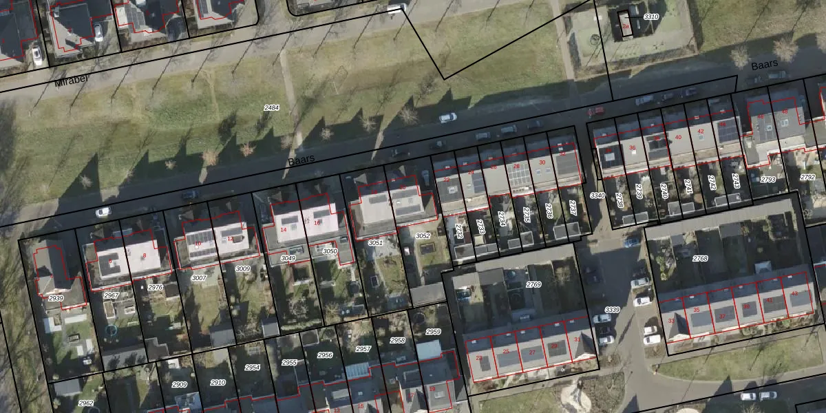 Het perceel waarop Baars 20 staat heeft een oppervlakte van 386 m². Dit is een groot perceel. De perceeloppervlakte wordt geregistreerd door het Kadaster. Gedetailleerde informatie over de maten van dit perceel kunt u vinden in het rapport Kadastrale kaart met maatvoering van Baars 20.