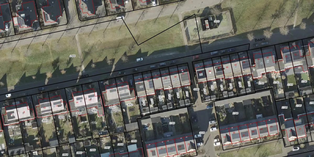 Het perceel waarop Baars 26 staat heeft een oppervlakte van 157 m². Dit is een middelgroot perceel. De perceeloppervlakte wordt geregistreerd door het Kadaster. Gedetailleerde informatie over de maten van dit perceel kunt u vinden in het rapport Kadastrale kaart met maatvoering van Baars 26.