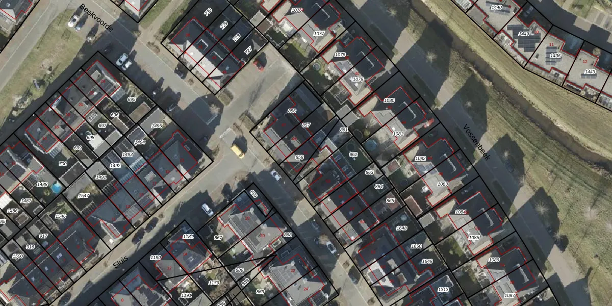 Gebruik de zoekbalk of klik op een perceel voor informatie over de adressen binnen dit perceel.