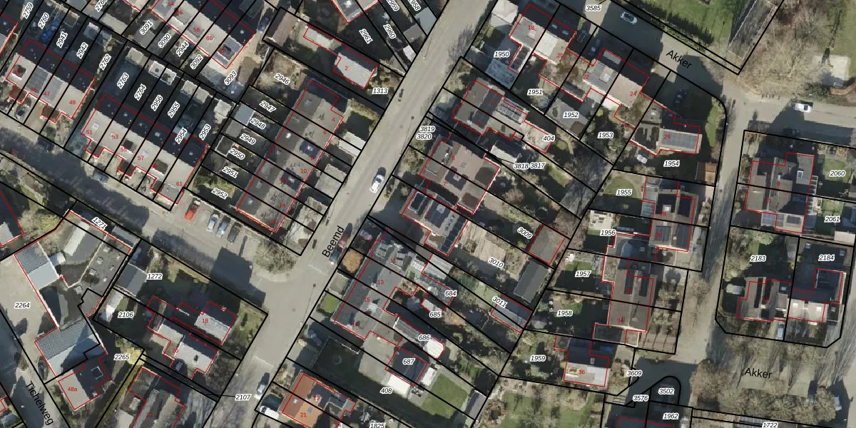 Het perceel waarop Beemd 9 staat heeft een oppervlakte van 489 m². Dit is een groot perceel. De perceeloppervlakte wordt geregistreerd door het Kadaster. Gedetailleerde informatie over de maten van dit perceel kunt u vinden in het rapport Kadastrale kaart met maatvoering van Beemd 9.
