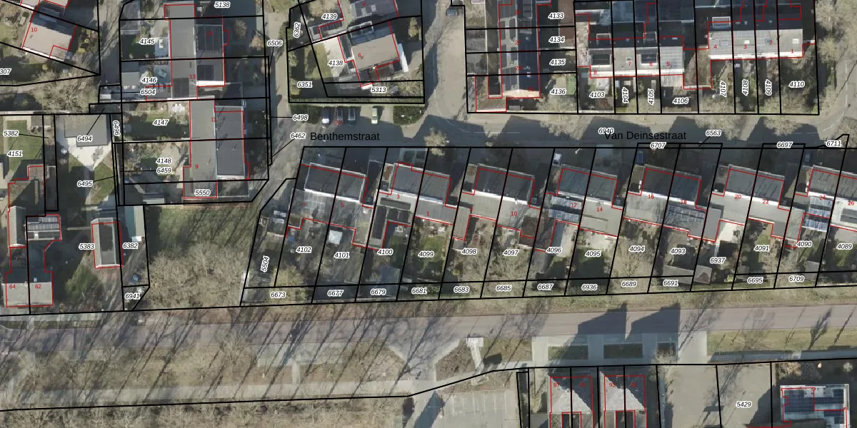 Het perceel waarop Benthemstraat 1 staat heeft een oppervlakte van 309 m². Dit is een groot perceel. De perceeloppervlakte wordt geregistreerd door het Kadaster. Gedetailleerde informatie over de maten van dit perceel kunt u vinden in het rapport Kadastrale kaart met maatvoering van Benthemstraat 1.