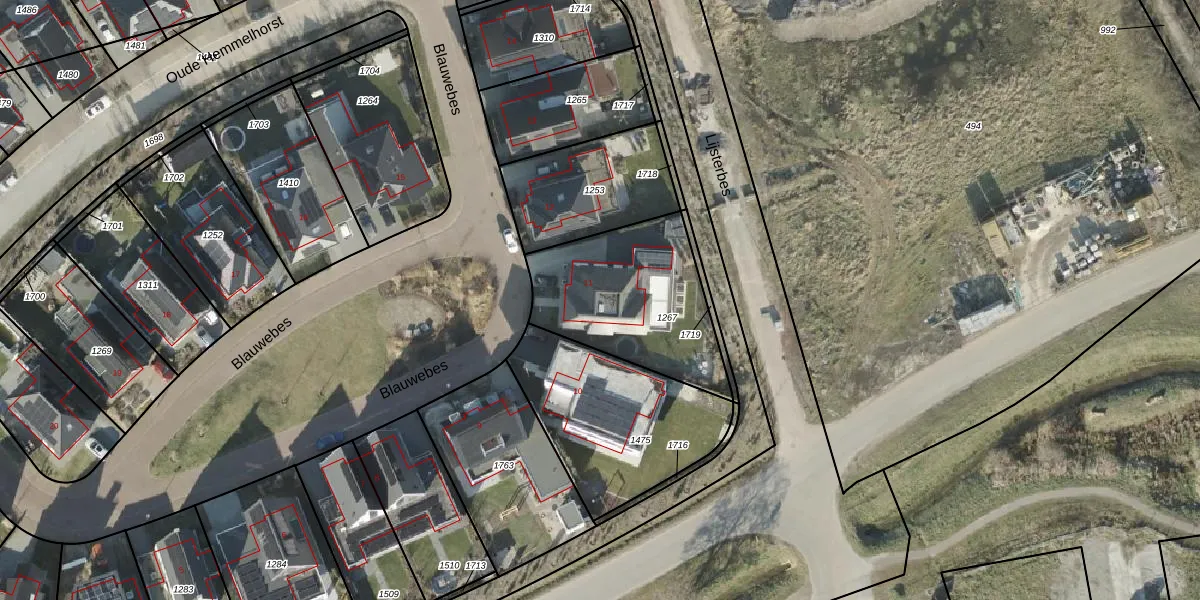 Het perceel waarop Blauwebes 11 staat heeft een oppervlakte van 634 m². Dit is een groot perceel. De perceeloppervlakte wordt geregistreerd door het Kadaster. Gedetailleerde informatie over de maten van dit perceel kunt u vinden in het rapport Kadastrale kaart met maatvoering van Blauwebes 11.
