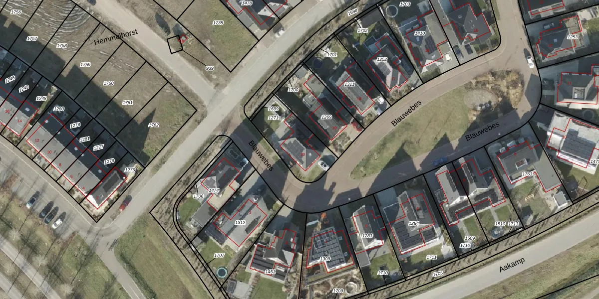 Het perceel waarop Blauwebes 20 staat heeft een oppervlakte van 395 m². Dit is een groot perceel. De perceeloppervlakte wordt geregistreerd door het Kadaster. Gedetailleerde informatie over de maten van dit perceel kunt u vinden in het rapport Kadastrale kaart met maatvoering van Blauwebes 20.