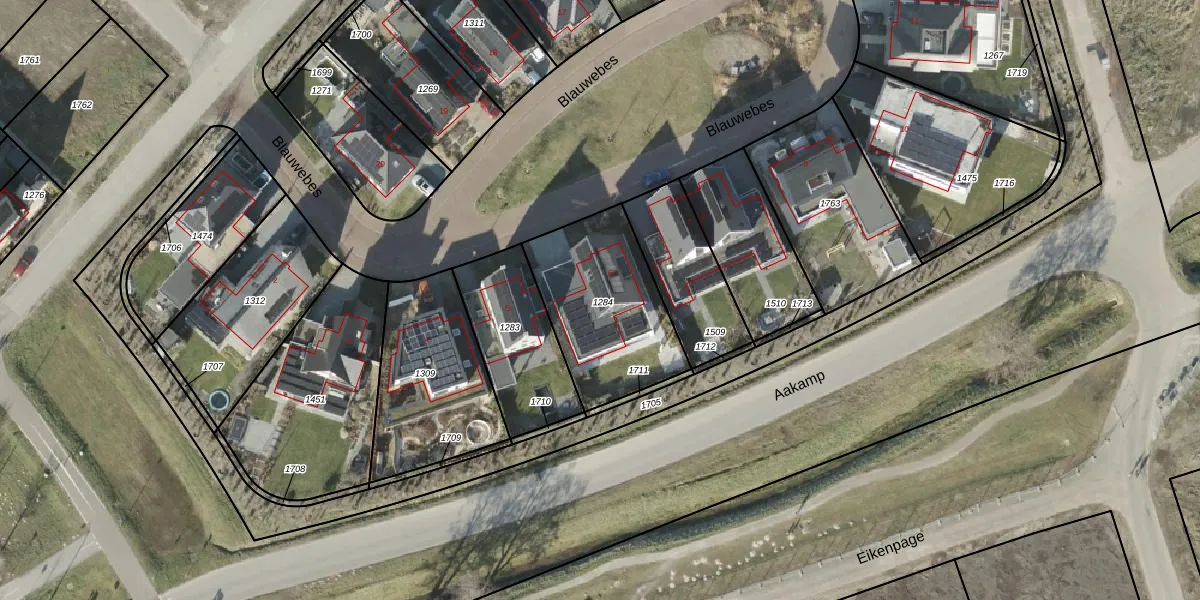 Het perceel waarop Blauwebes 6 staat heeft een oppervlakte van 559 m². Dit is een groot perceel. De perceeloppervlakte wordt geregistreerd door het Kadaster. Gedetailleerde informatie over de maten van dit perceel kunt u vinden in het rapport Kadastrale kaart met maatvoering van Blauwebes 6.