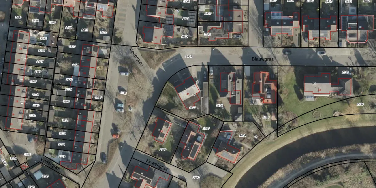 Het perceel waarop Blauwgras 34 staat heeft een oppervlakte van 608 m². Dit is een groot perceel. De perceeloppervlakte wordt geregistreerd door het Kadaster. Gedetailleerde informatie over de maten van dit perceel kunt u vinden in het rapport Kadastrale kaart met maatvoering van Blauwgras 34.